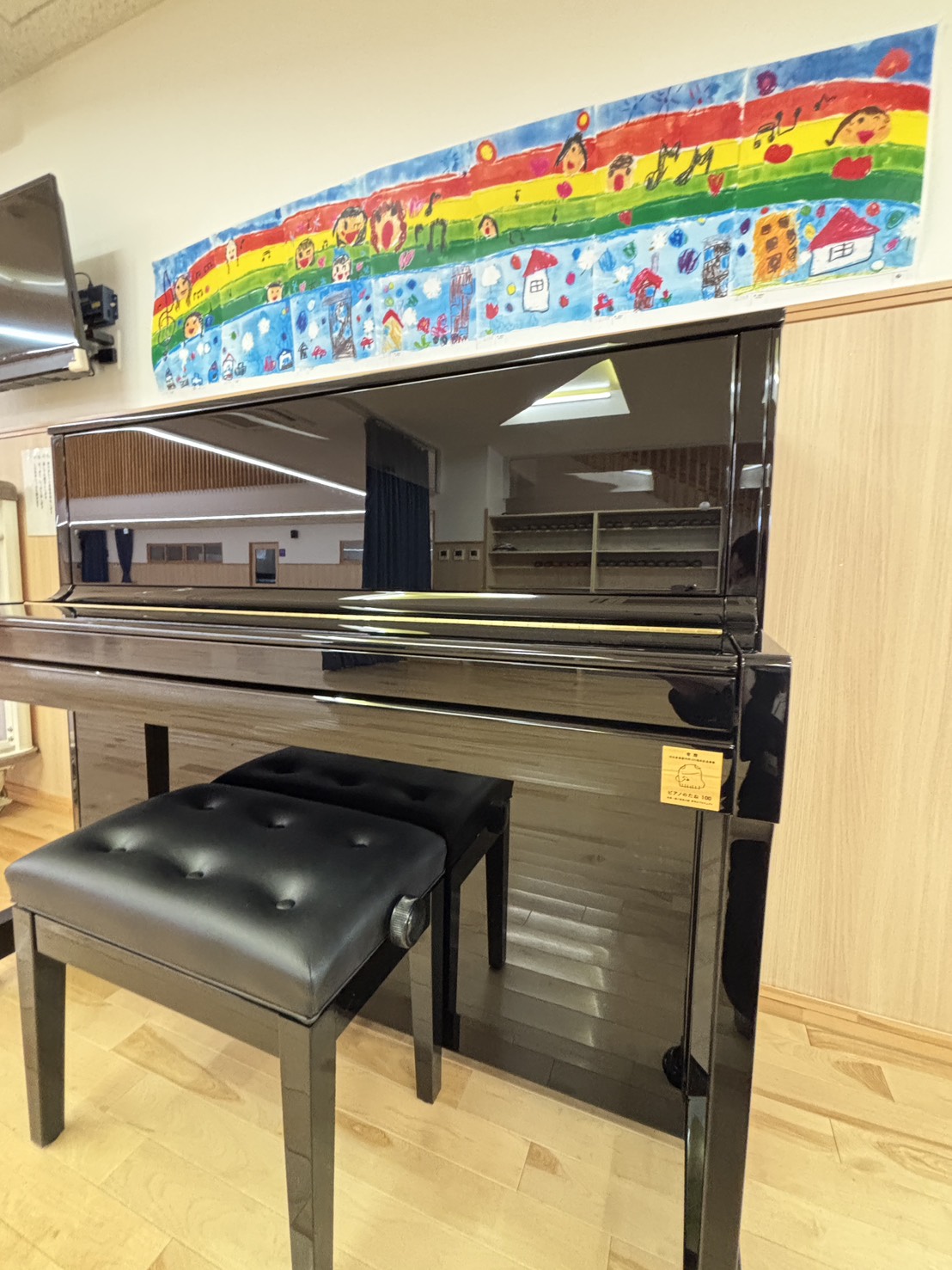 KAWAI製のアップライトピアノを保育室に、そしてホールにはグランドピアノを導入しています。