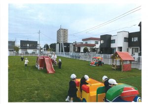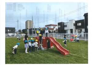 とーっても楽しみにしていた、園庭の使用を開始!!やっと天然芝の根がつき、遊んでも大丈夫になりました💡
