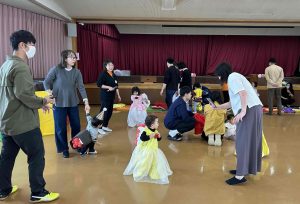 いろいろな衣装や帽子、お面に小物もあり、みんな思い思いに身に付けて大変身!