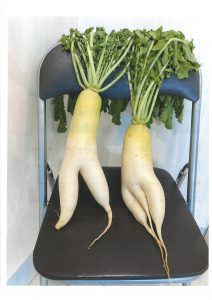 現在、幼稚園の玄関には、カボチャと大根があります💡
