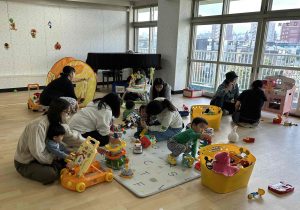 お話の後は、また自由遊びでしたが、絵本コーナーで本を選んだり、滑り台で滑ったり、大きなクレーンに乗ったり、みんな思い思いに楽しく過ごしていました。