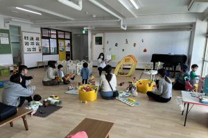 自由遊びから始まって、みんなが揃ったところで先生の読み聞かせ。