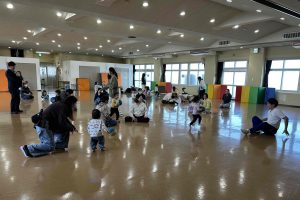 リズム体操で体を動かした後、ボール遊び。
