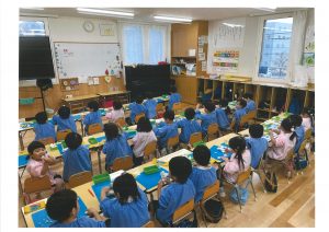 インフルエンザの感染拡大を防止するため、登園を自粛して下さっている中での保育の様子です。