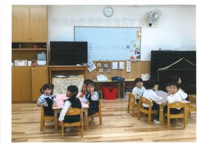 各年別ごとでの合同保育を行っています。いつもと違う雰囲気を楽しみながら、園生活を過ごしています。