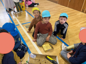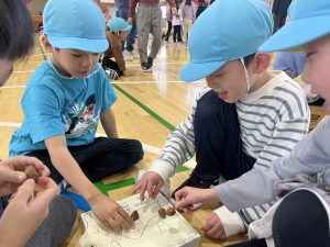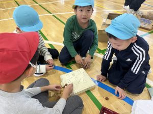公園で拾ったどんぐり・松ぼっくり・落ち葉などで作られた玩具に自分たちから、 進んであっちへこっちへと遊びに行っていました。