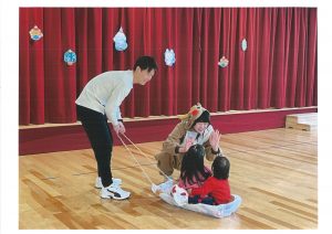 みんなでゲームをしたり、楽しく踊りをしました🎵サンタさんから、年長児手作りのプレゼントをもらい、にこにこの子どもたちでした😊😊