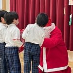 幼稚園でクリスマス会がありました。サンタさんとトナカイさんの登場で子どもたちは大喜び!