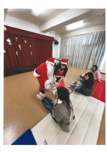 すると、サンタさんが登場🎅可愛いこどもたちに、プレゼントを持って来てくれました✨✨サンタさんに会えて、プレゼントももらい、とても可愛い笑顔をたくさん見ることができました!
