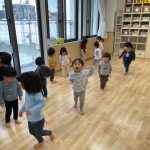 りす組・ぺんぎん組合同でしっぽ取りゲームをしました!すぐに取られて悔しがるお友達や最後までしっぽを取ら
