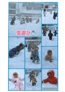 この日は、朝から大雪の日…時には、吹雪いている時もありました…元気いっぱいの子どもたちは、園庭での雪遊びを楽しみましたよ😊いつもより、雪がフカフカで歩くのも、遊ぶのも楽しかったようです💡雪まみれの子どもたちは、「楽しかったぁ!」の声をたくさん聞くことができました!(写真は、1歳児・2歳児クラスです。)
