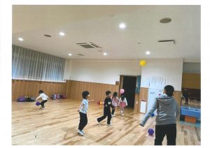 《 夕方は、年少・年中・年長組が集合し、ホール遊び🎵 》