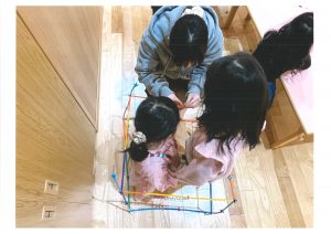 縦割り保育の中、年齢関係なく関わり遊んでいますよ。