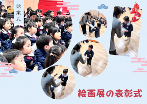始業式では、元気な歌声や冬休みのことを発表。休み中に発表になった絵画展の表彰式も行いましたよ