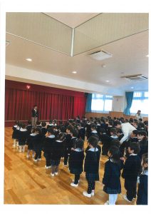 今日から3学期のスタート!久しぶりに会った友達と先生に、笑顔での挨拶を交わしました✨✨始業式では、冬休みの出来事。これからある楽しい行事についての話がありました。3学期は、締めくくりの学期です。進級・卒園に向けて、心と体の準備をしていきます😊