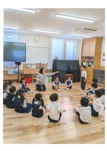 昨日の大雪でバス送迎が困難な為、自主登園での保育を行っています。保護者の皆様のご協力に感謝です!登園した子どもたちは、各年別ごと合同保育を展開し、過ごしています🎵月曜日は、英語教室がありました✨園庭や駐車場の雪山も大きくなっています…⛄