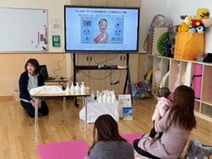 本日、子育てサロンAndanteの中でスキンケア講座がありました。赤ちゃんだけでなく、大人にも大事な保湿についての講座です。保湿のタイミング、季節に合わせたテクスチャーなど興味深いお話がいっぱいありましたよ。