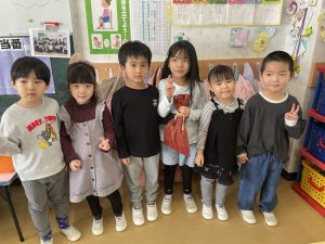 10日(火)、今までお世話になった年長の「あさがお組」「こすもす組」「たんぽぽ組」に年少と年中の代表のお友だちがお部屋を訪問して みんなで感謝の気持ちを込めたプレゼントを届けました。