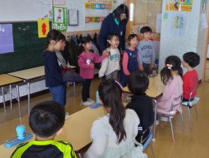 年長組からは、 在園の子どもたちに手作りの大型紙芝居のプレゼントが贈られました。