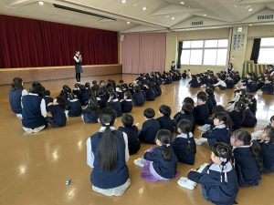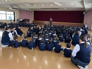 春休み中は、4月から始まる新しいクラスで「がんばりたいこと」を考え、安全に気をつけて元気に過ごしてほしいことなどのお話がありました。
