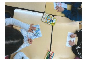 今日の年中・年長組の様子は、塗り絵をしました。じっくり丁寧に色塗りする子。ダイナミックに色塗りする子と様々です😊