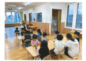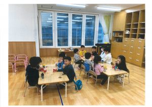 土曜日、登園するお友達は少人数。乳児クラスの子も幼児クラスの子を一緒に過ごします。お兄さん・お姉さんは小さい子に優しく接する姿も見ることが出来、微笑ましいですよ💗ちなみに、乳児クラスの子が、お昼寝の時は別での活動になります。