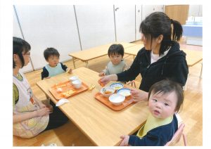 りす組さんの3人のお友達は、お昼寝をしての午後おやつを食べている姿に、少しずつ慣れを感じます✨