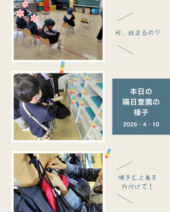 本日より隔日登園。年少組は慣らし保育!
