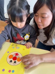 先生の話を聞いたり、制作をしたり、体操をしたりするなど、一緒に幼稚園体験ができます。