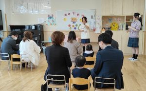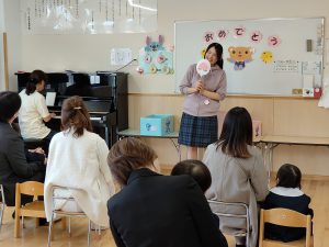 先生のピアノ伴奏とペープサートを見ながら、楽しい時間を過ごしました。