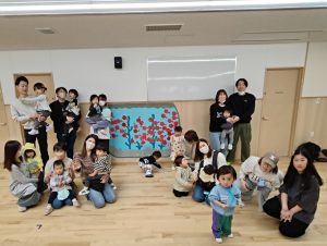 1回目の今回は、12名の子どもたちといっしょに、お母さん・お父さん、お家の方々が来てくれました。
