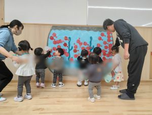 幼稚園探検の後は、みんなで元気いっぱい体操をしました。