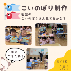 先生のお話をしっかり聞き、こいのぼり🎏を作るとわかると大興奮!!