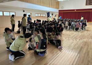 地震が止んで、避難の放送が入ると、すばやく避難を開始しました。