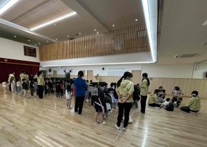 先生の指示をしっかり聞いて、静かに座って待機しています。