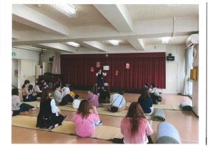 研修所ホールで入会式を行いました🌸担当の菜穂子先生が、手遊びとエプロンシアターをしました。次回からは、本格的ににこにこクラブが始まります!親子で、楽しみながら学んでいただきたいと思います💗