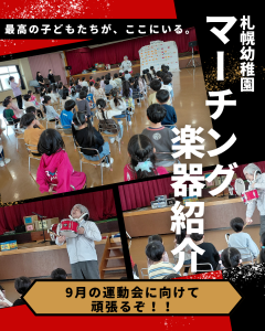 年長組は、9月に開催予定の運動会に向けて、マーチングの楽器紹介がありました🎵